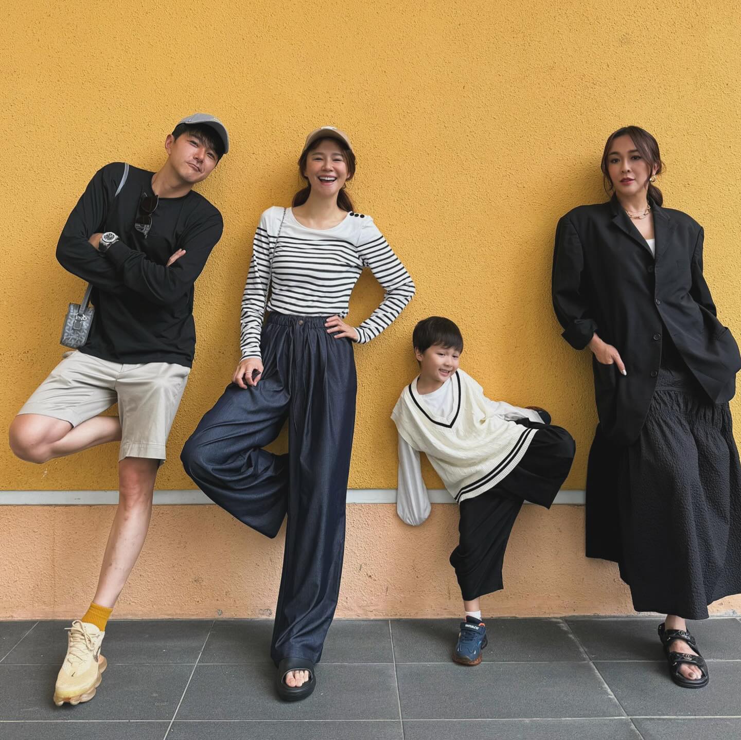 在合照中,可以看到萧正楠、黄翠如、吴天瑜和Danton靠在墙边,展示着他们的大长腿。