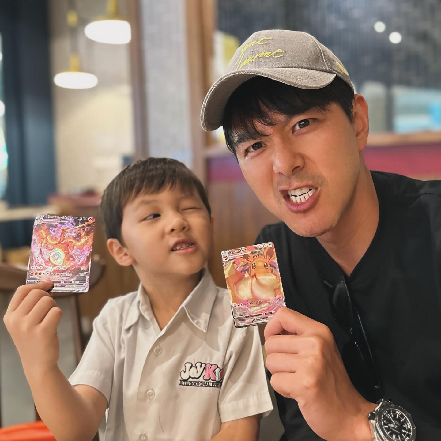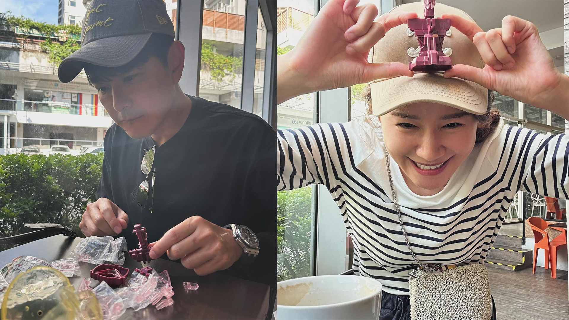 他们透露,在抵达马来西亚的第一天就帮干儿子Danton拼装高达模型,萧正楠还和Danton一起玩Pokemon牌。