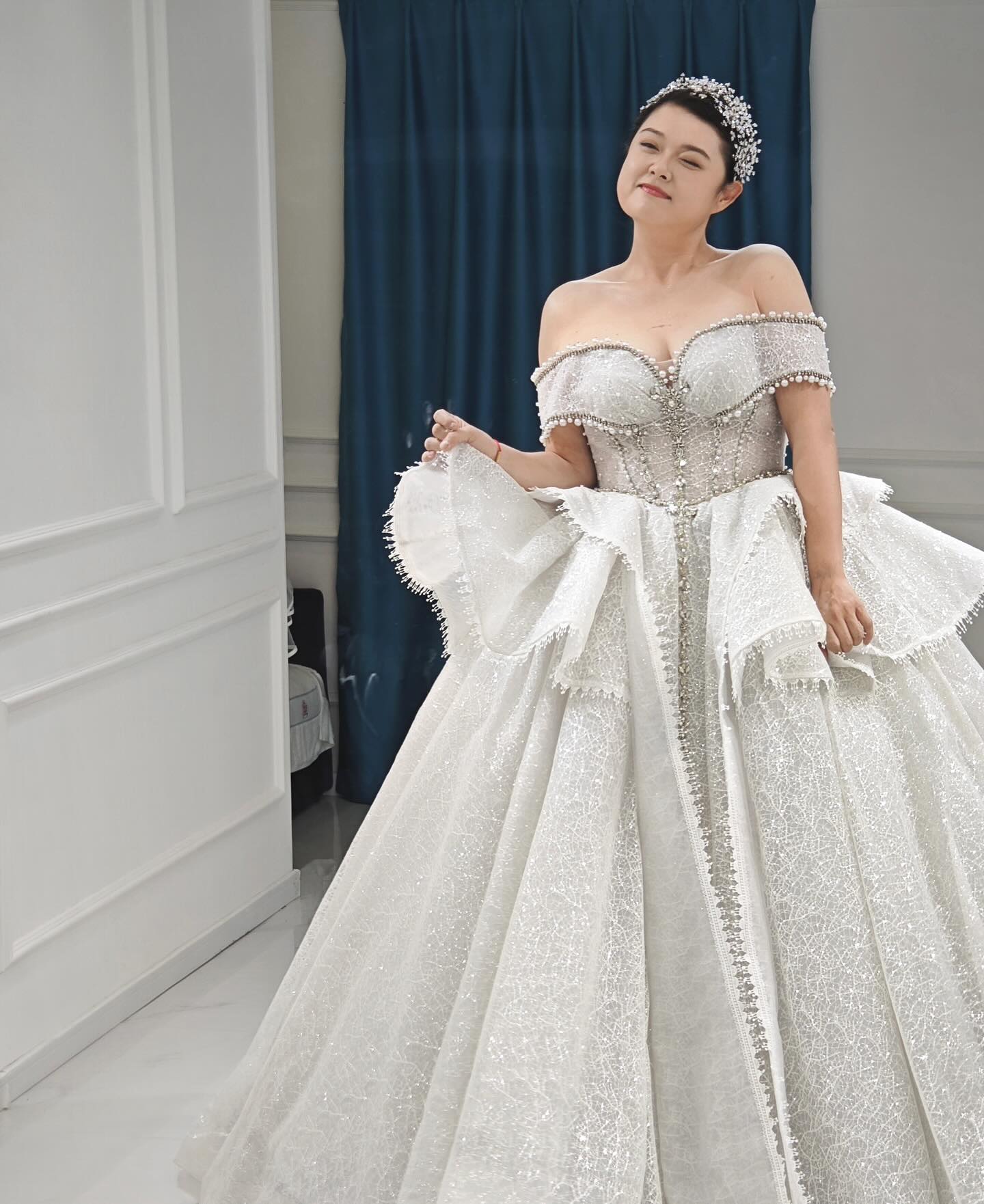 “细细粒”早前突然在社交媒体上发布一组露肩深V婚纱照,为在40岁前留下一个纪念。
