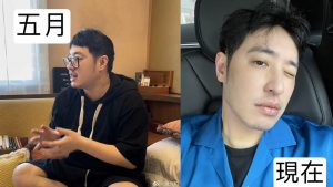 他晒出5月时全身肉肉的照片,相较于现在状态,体型小了一码。