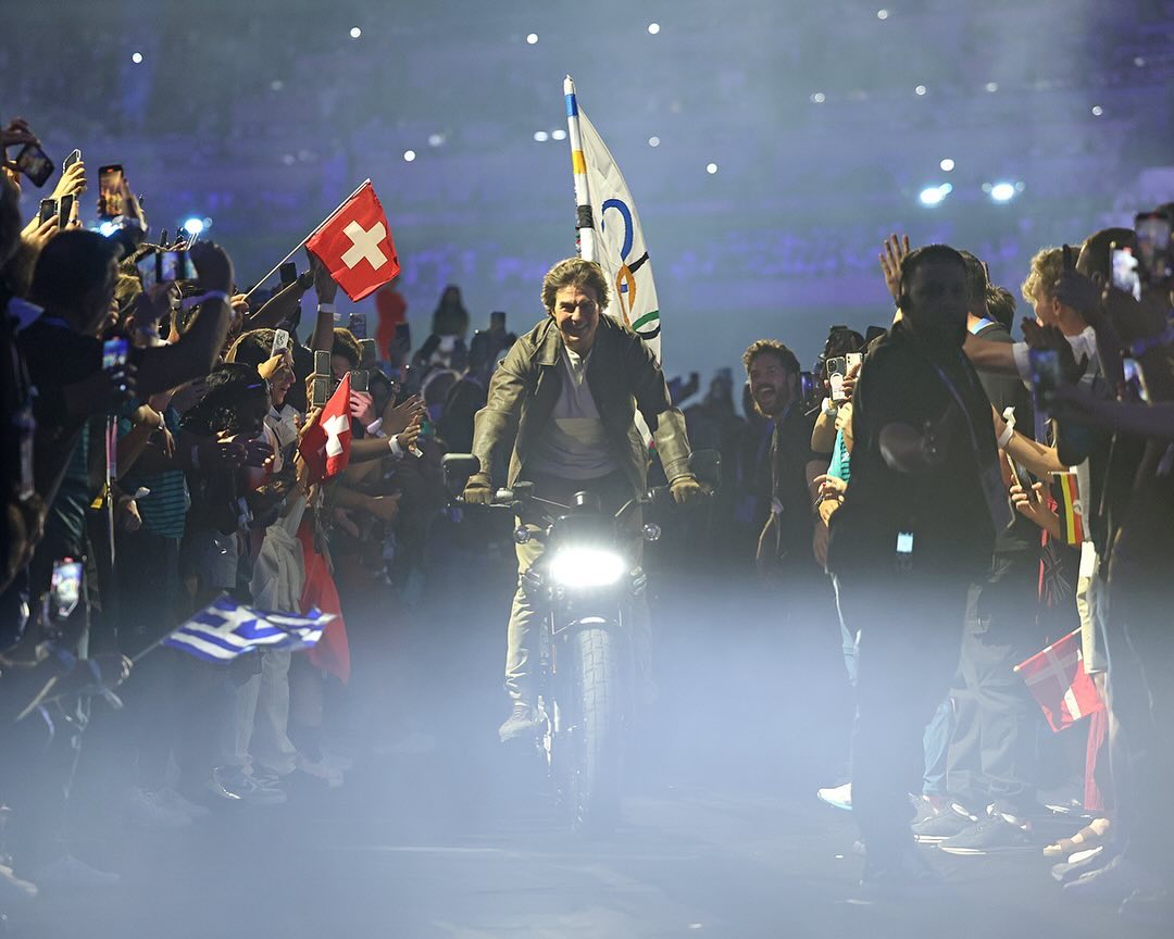 汤告鲁斯从巴黎体育馆屋顶约16层高的地方帅气降落,骑重型摩托车表演了跳伞等一连串华丽特技,为巴黎奥运画上了完美的句号,也象征洛杉矶接棒2028奥运,精彩的表演让现场8万观众欢呼不已,大赞汤哥帅气!