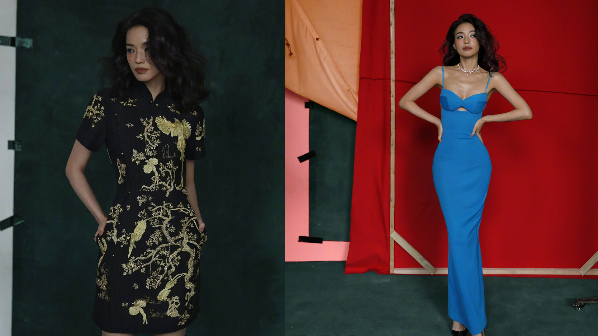 舒淇还穿著贴身蓝色洋装,完美勾勒出婀娜多姿的身材曲线。