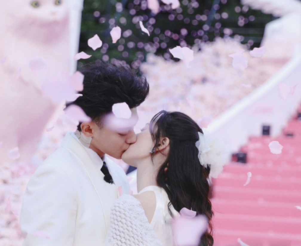 从视频中看到黄子韬身处粉红色花海,捧着粉红色鲜花单膝下跪,激动流泪问徐艺洋:“我敢娶你,你敢答应我吗?”让徐艺洋感动大哭:“我敢!”两人甜蜜拥吻,让现场所有人跟着动容。