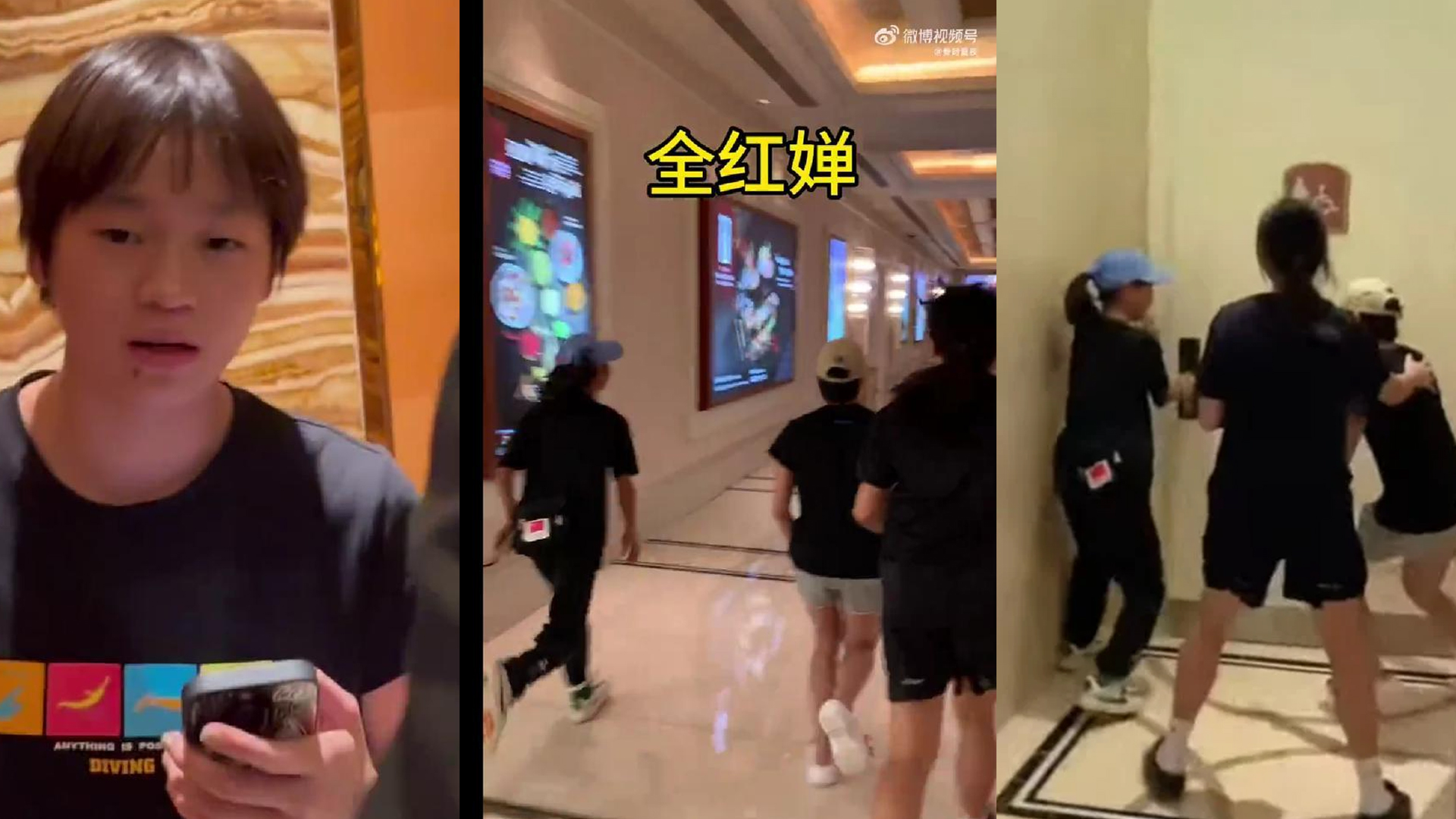 随后,国家队职员也赶到,保安形成了人链,成功护送全红婵前往电梯大堂。