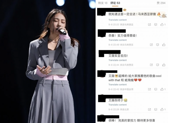 许多网友也在评论区留言祝贺:“就知道这首一定会进!马来西亚骄傲”、“实至名归”、“唱得很好”、“实力很强”、“实力值得晋级”等等,艾薇之后亦贴上表演片段,写道:“再一次唱《盛夏光年》这首歌,满满感触,希望您们看得开心。接下来的舞台继续努力!”。
