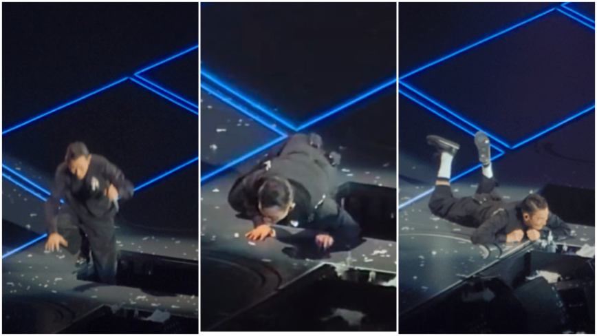 香港天王刘德华正在举办个人巡演,他在深圳站开唱时因舞台地下通道门不慎打开,他整个人踩空惨摔台上,所幸没整个人掉下去,人也没事,但仍吓坏了现场的歌迷!
