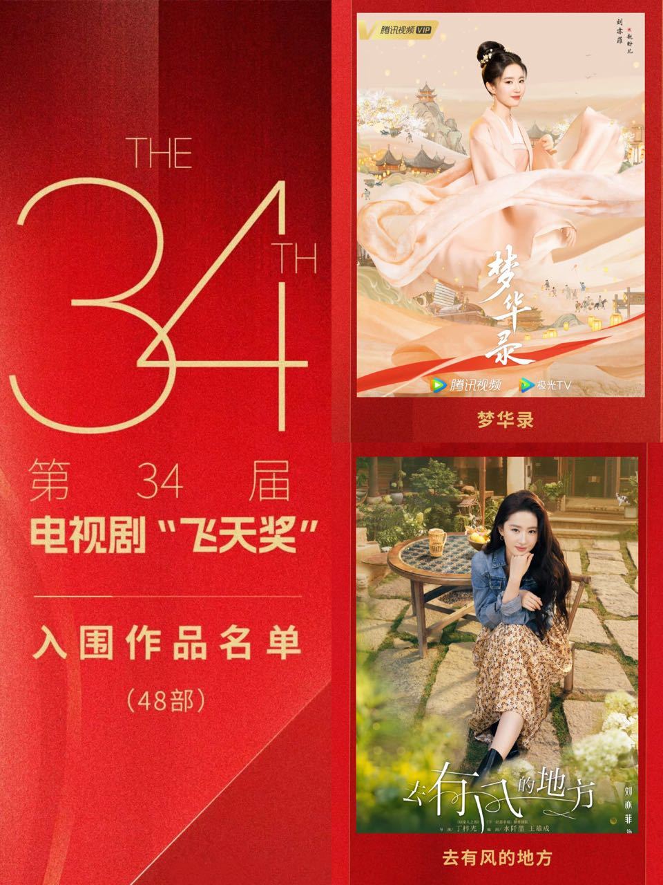 刘亦菲凭借去年播出的两部剧集《去有风的地方》和《梦华录》获得了第32届金鹰奖最佳女主角奖的提名。