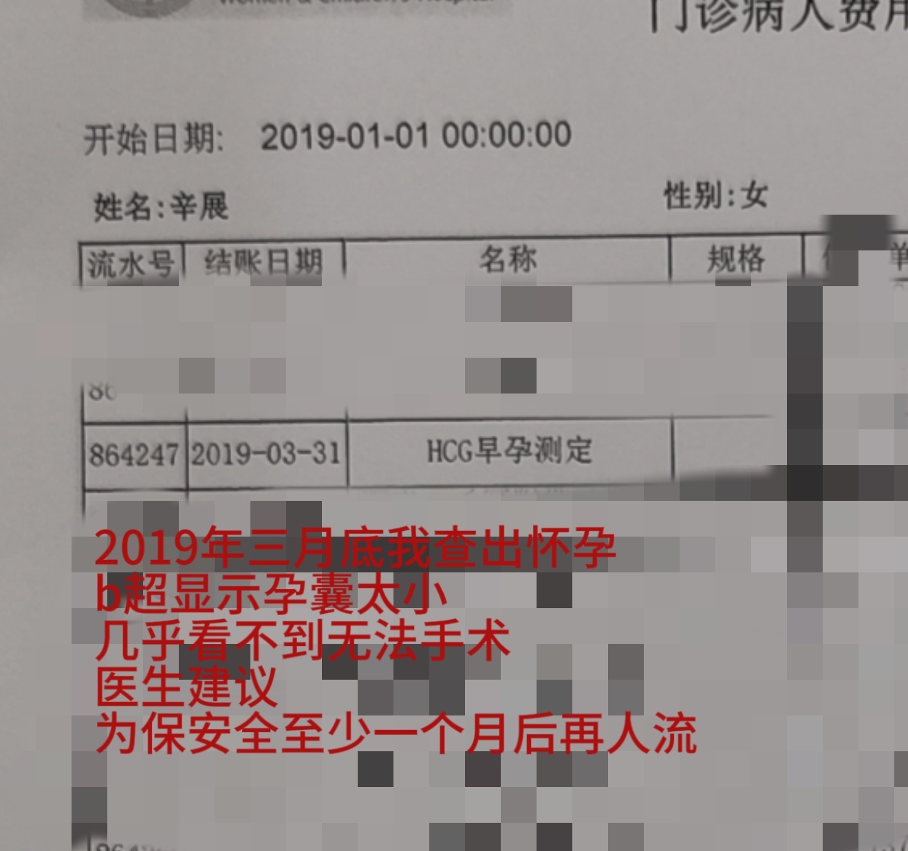 辛雨锡附上产检和堕胎证明,透露自己是在2019年3月底怀孕。