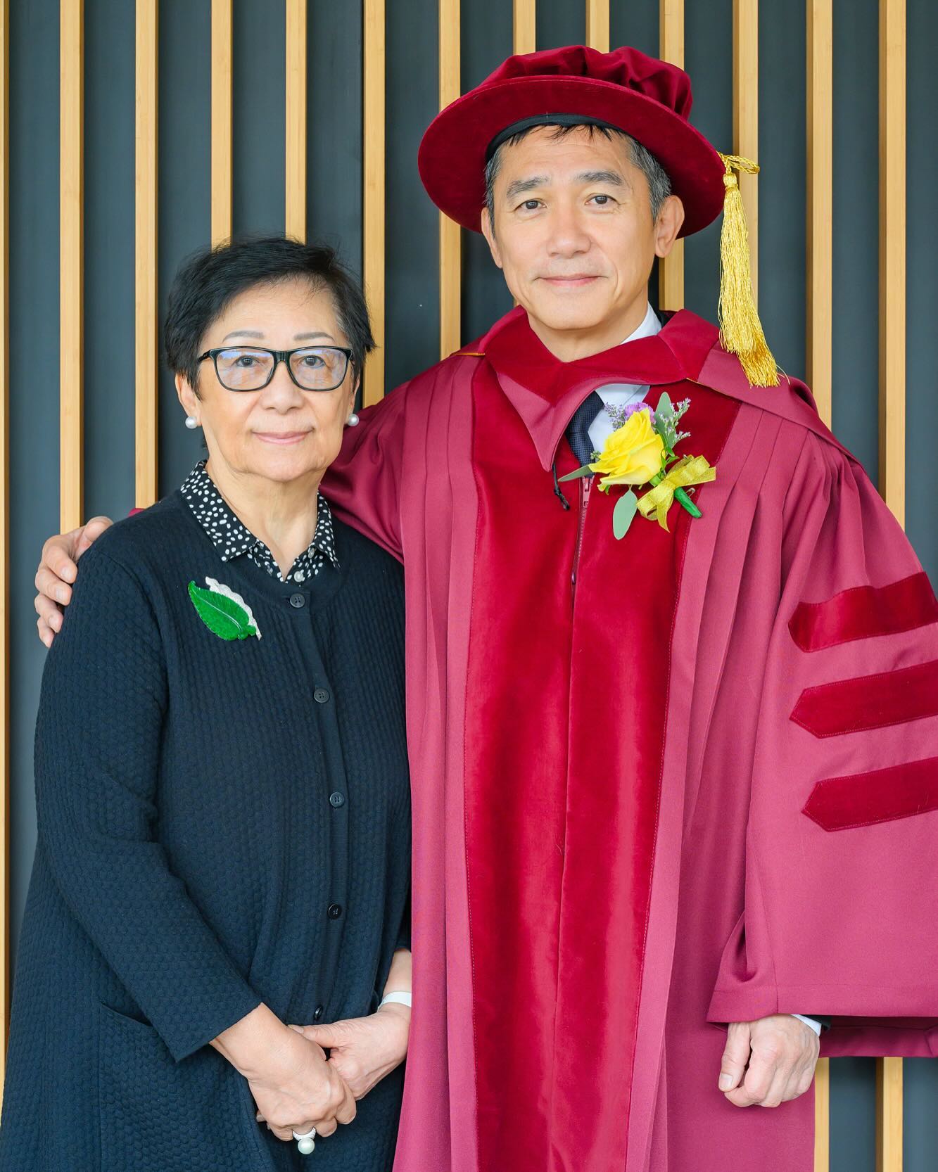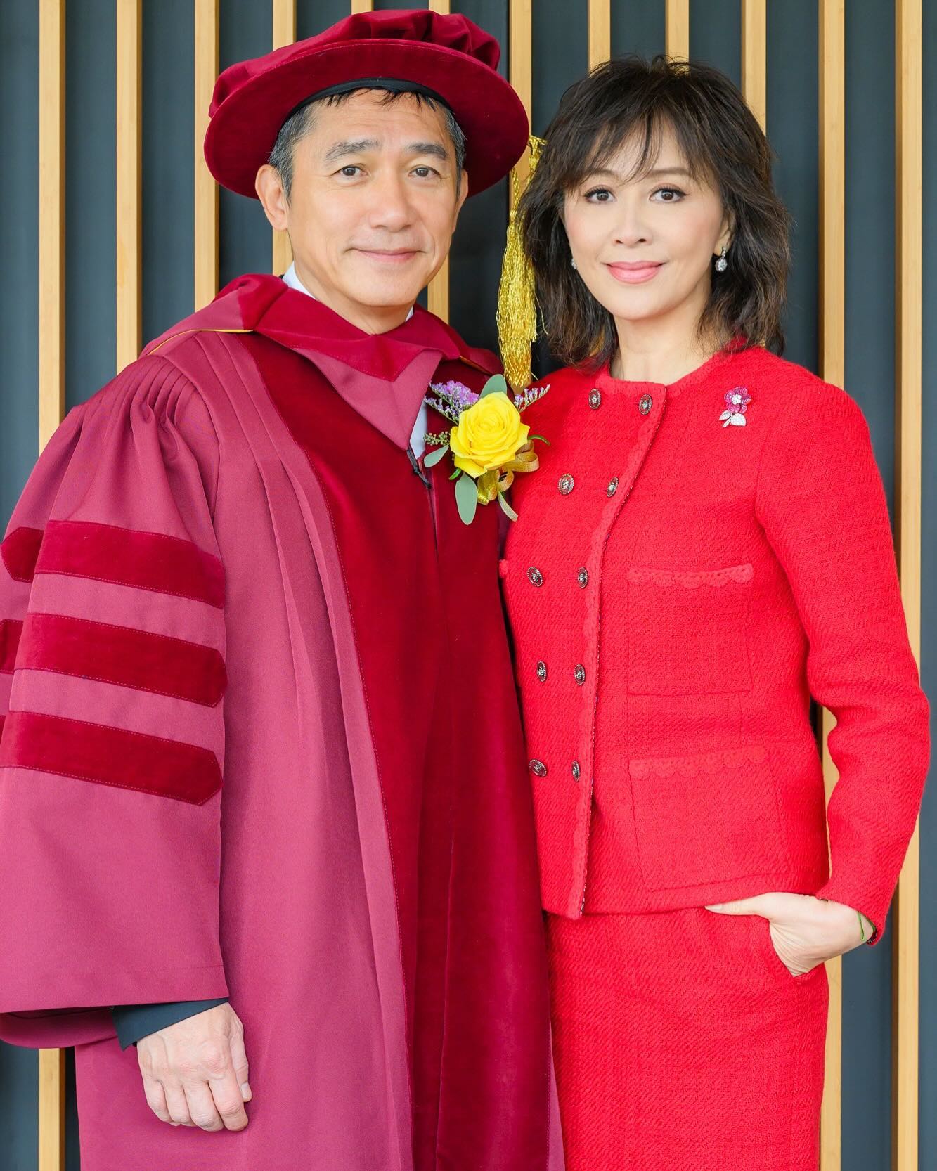 梁朝伟获颁人文学荣誉博士学位,妈妈及太太刘嘉玲都到场见证这一重要时刻。