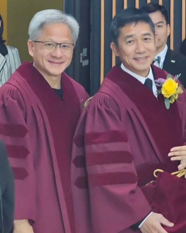 影帝梁朝伟及英伟达(Nvidia)行政总裁黄仁勋荣获香港科技大学颁发人文学荣誉博士学位。