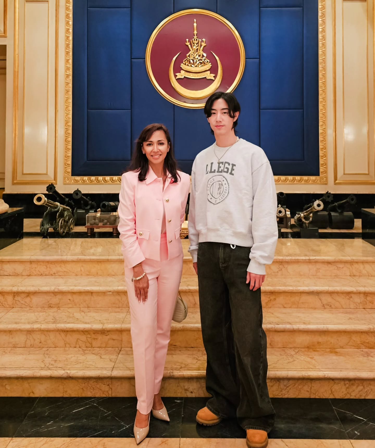 照片中,札达莎公主身穿粉色服装,而Mark Tuan则穿着休闲服,两人在王宫内合影留念。札达莎公主配文写道:“Mark Tuan在雪兰莪官方宫殿——阿南莎王宫的私人游览,欢迎来到马来西亚,能再次见到你真的很开心。”
