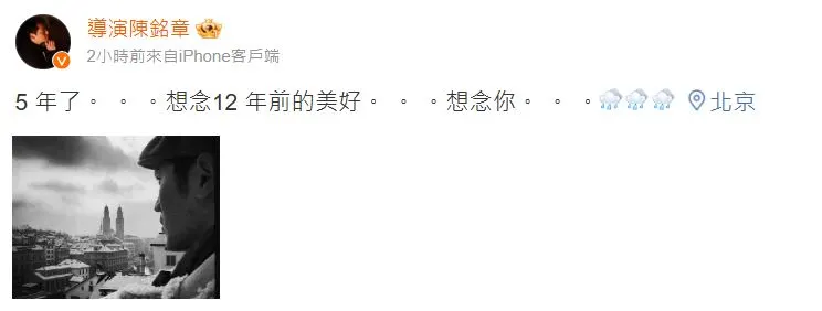高以翔当年的电视剧代表作《遇见王沥川》导演陈铭章,今上载出一张侧拍照悼念高以翔,感性写下:“5年了…想念12年前的美好…想念你…”,短短14个字诉尽对高以翔的想念,贴文曝光后不少粉丝忍不住鼻酸。