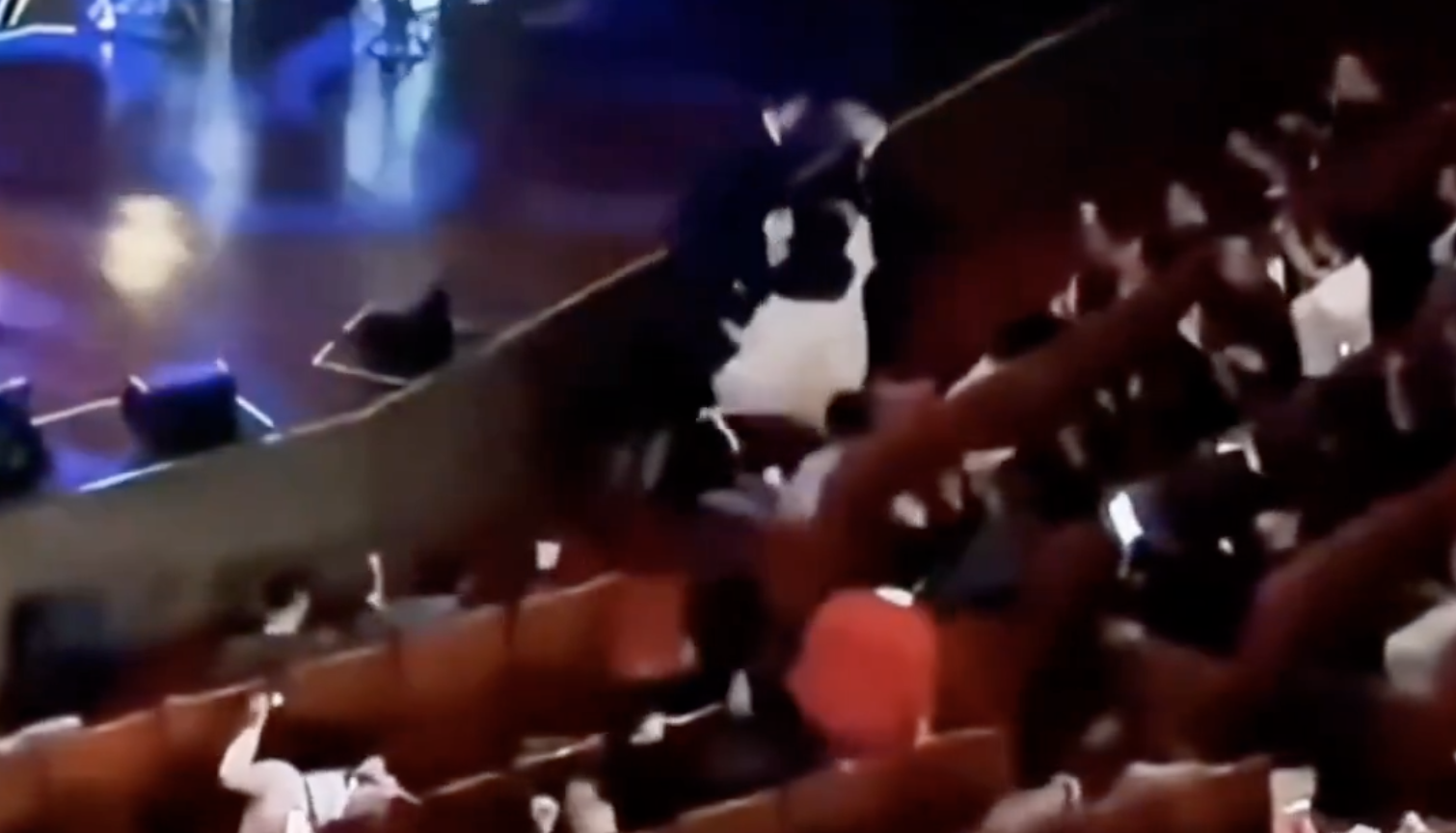 从网民上载至社媒的2段视频中看到,女子闹场后,身旁随即有人劝阻:“这是音乐厅,不要这样子,你干什么?”但她不听劝阻,最后2名工作人员前来劝告她离开,但她拒绝最后被强行拖着离场。