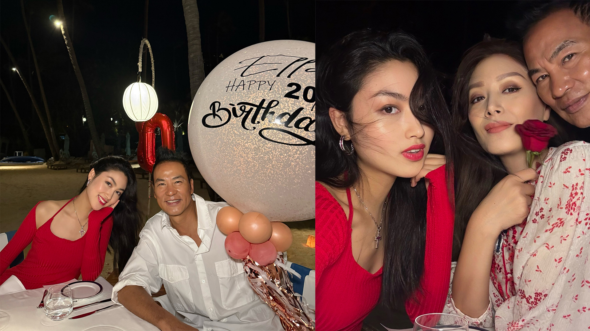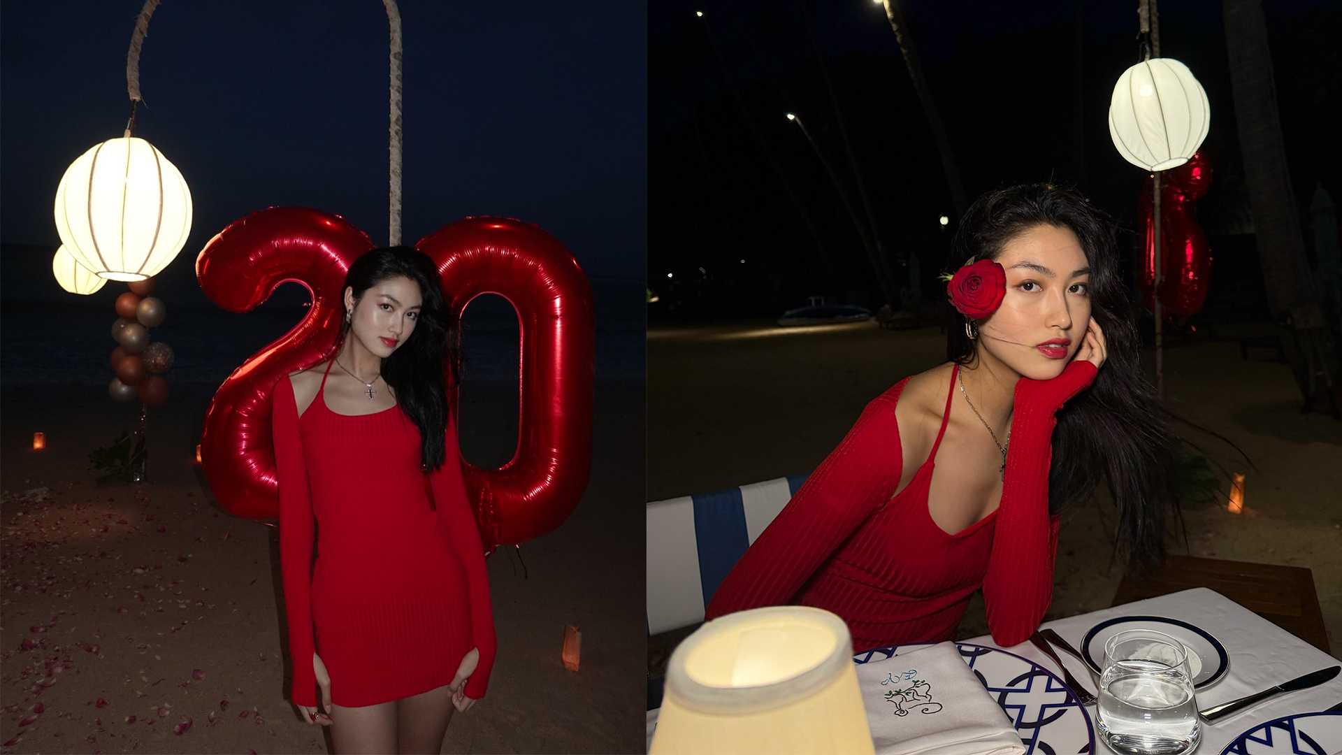 从照片中可见,任晴佳和父母在海边享用大餐,现场以气球和灯饰布置,并挂上红色“20”字样的气球,琦琦则手持红玫瑰,寿星女任晴佳也配合地以全红色挂颈短裙现身,大晒一双逆天长腿外,充满女人味。