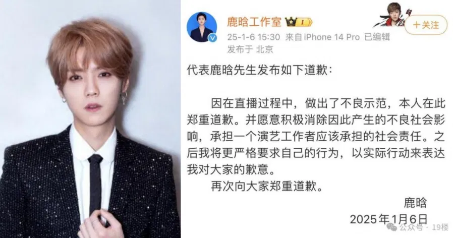 他的工作室微博火速代替鹿晗发文表示,“因在直播过程中,做出了不良示范,本人在此郑重道歉,并愿意积极消除因此产生的不良社会影响,承担一个演艺工作者应该承担的社会责任,之后我将更严格要求自己的行为,以实际行动来表达,我对大家的歉意,再次向大家郑重道歉。”