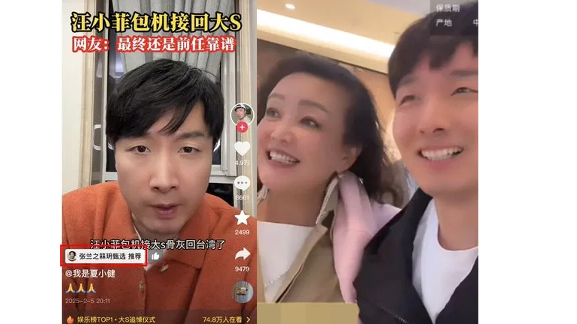 本月5日有中国网红“我是夏小健”在直播称:“据台媒报导,汪小菲包机接大S骨灰回台湾了,那此次包机呢,是汪小菲主动联系解决的,以汪小菲的性格,他是不允许大S像行李一样被拉回来,他一定让大S体体面面的归来。“