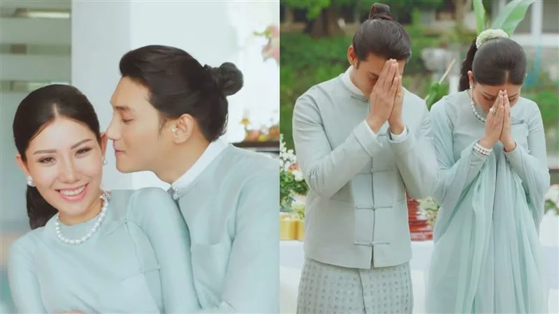 白英与林米亚身穿浅绿色传统服装,在双方亲友见证下,于庭院草坪完成订婚仪式。准新人在镜头前大方地放闪,包括牵手、拥抱和亲吻,回首4年的交往过程还感动泛泪,场面温馨。