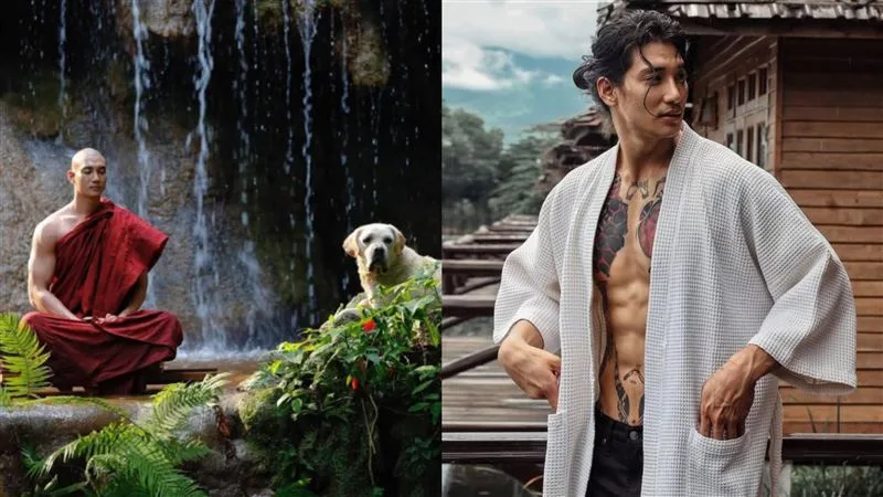 2021年他短暂出家,剃光头发、穿上袈裟的照片曾轰动一时,被封“地表最帅和尚”。