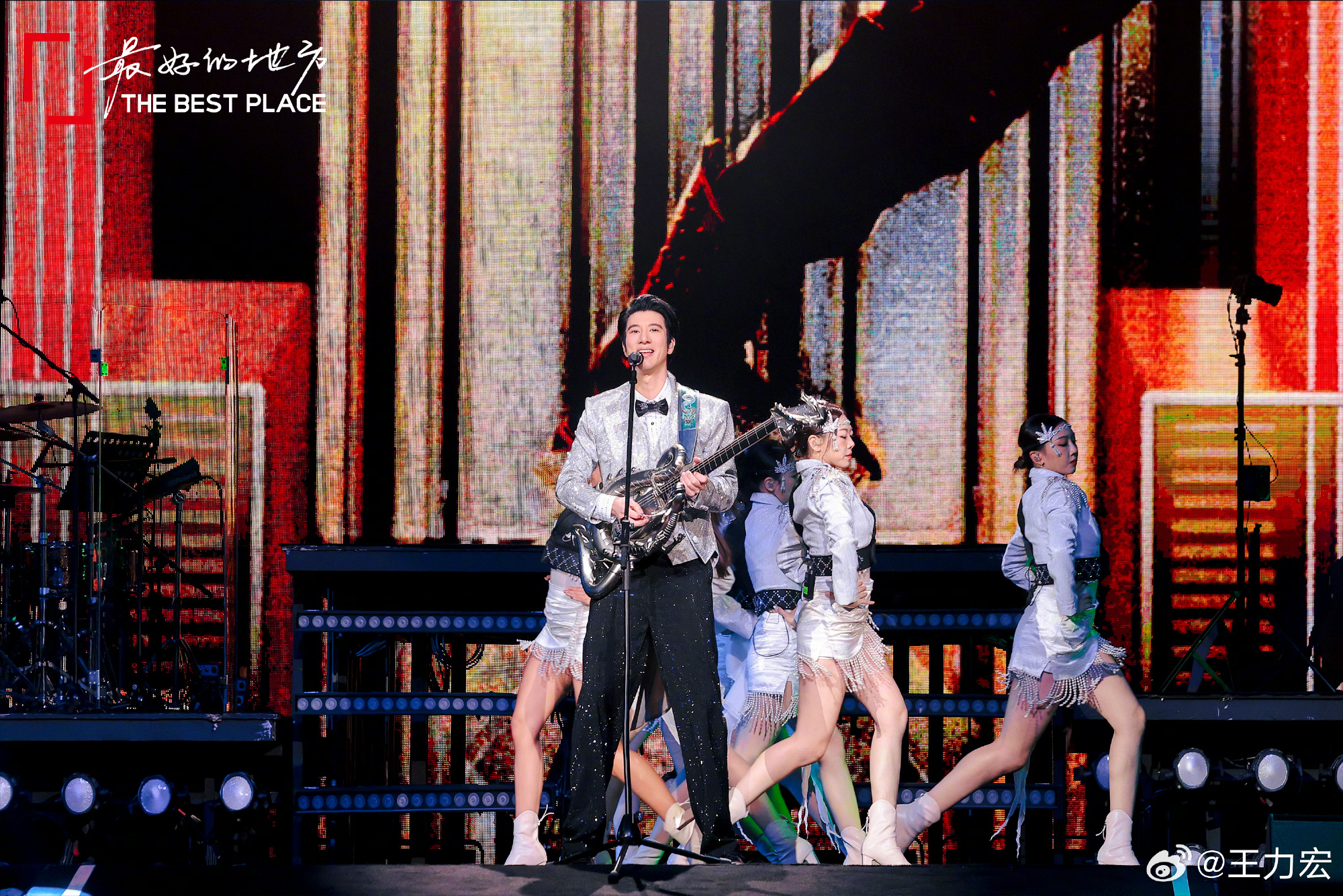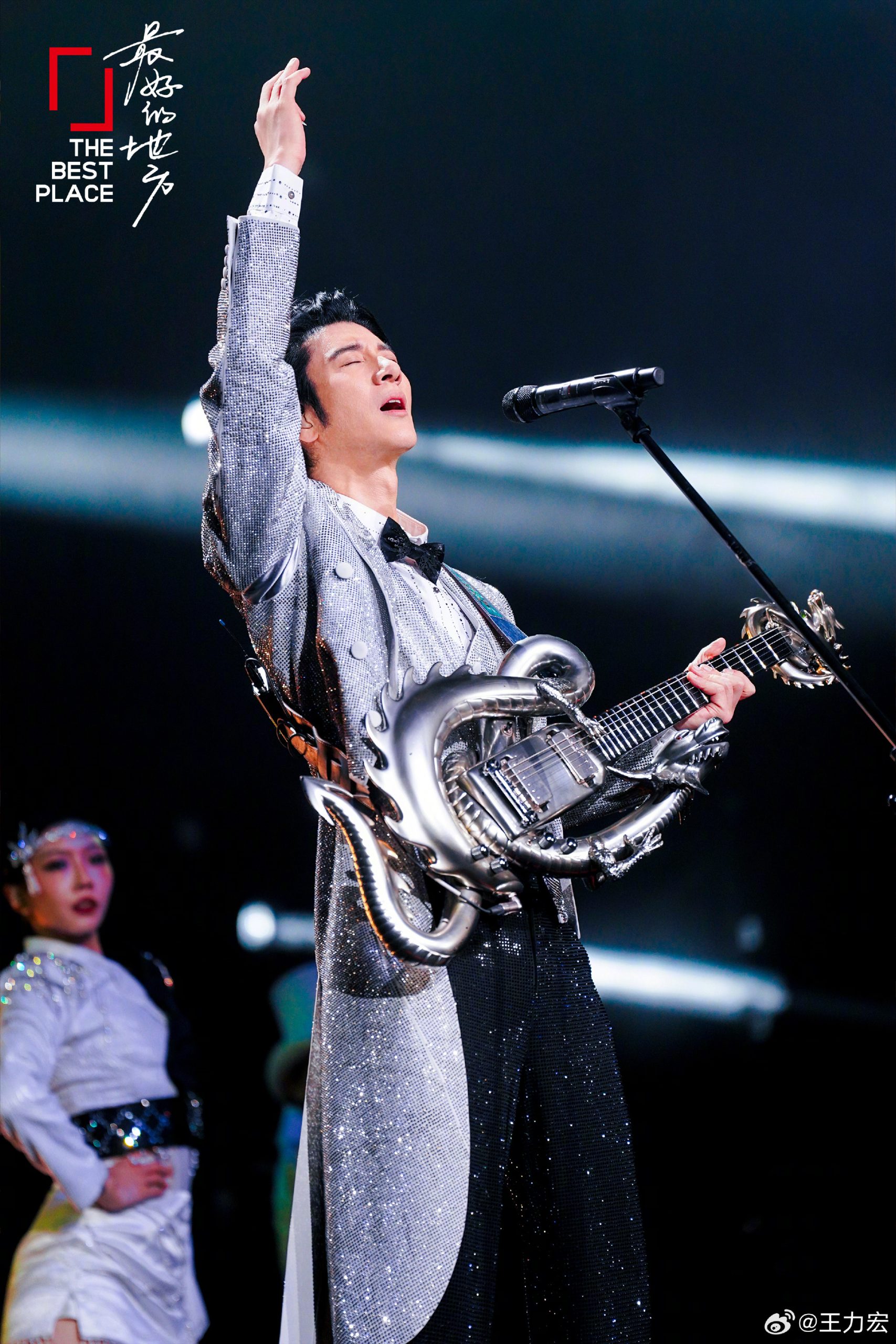 尽管出现突发状况,王力宏仍稳住情绪,迅速调整站位,如常演唱完毕。