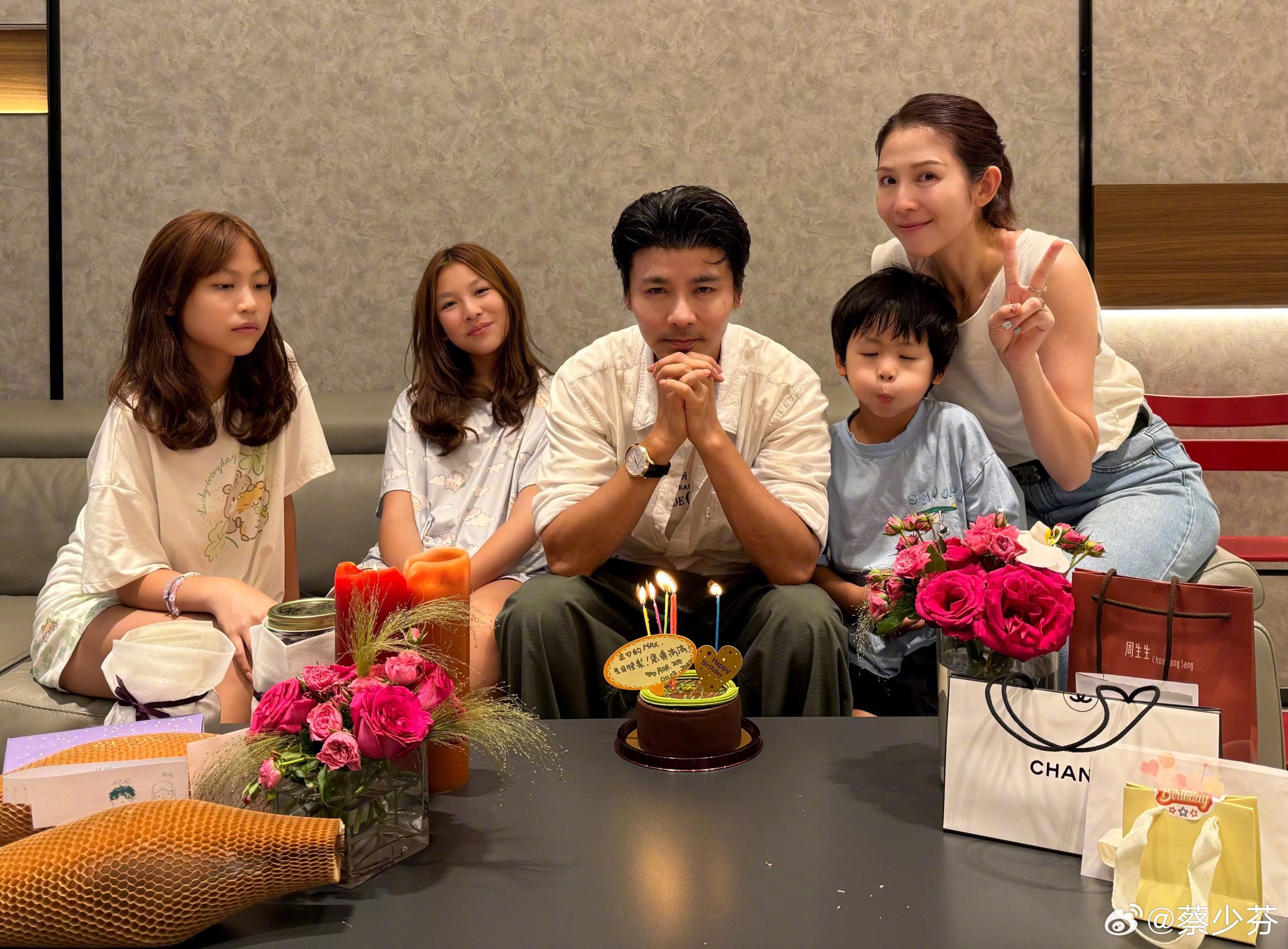 蔡少芬之后也在社群网上载聚会照,除了和两位好拍档合影外,4人亦有合照,期间夫妻2人站C位,蔡少芬拥着陶昕然,侧身贴着老公。