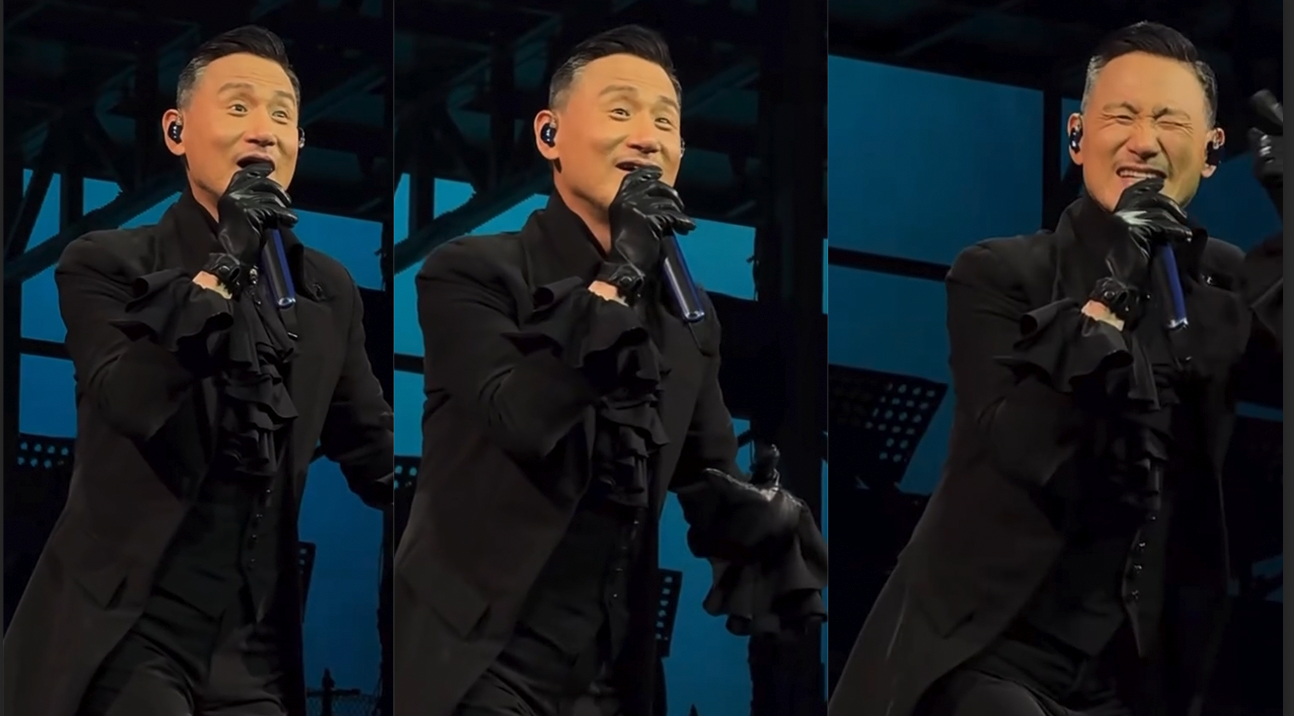 张学友在演唱会上以粤语分享彩排趣事时,有观众突然大声要求“讲普通话”;他先是愣了一下,随即微笑回应:“对不起喔,我不能讲普通话….”