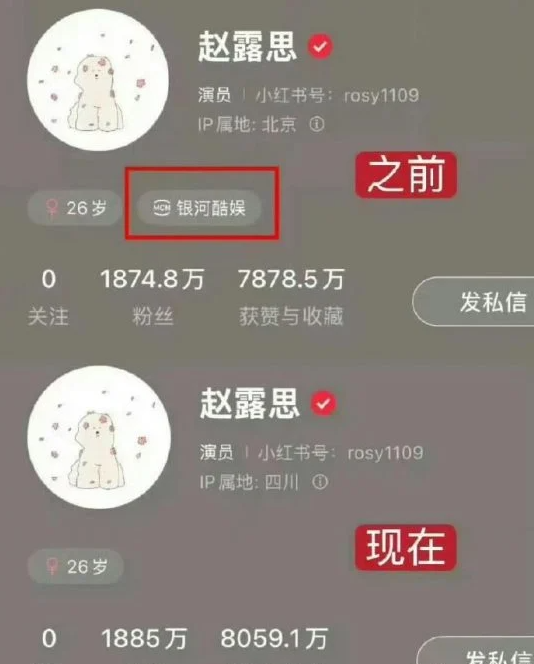 中国女星赵露思去年突然病倒送医,并证实罹患失语症,近日被发现小红书认证少了所属经纪公司“银河酷娱”的名称,疯传已经与公司解约,银河酷娱否认解约。