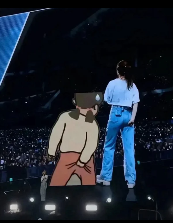 近日网上疯传一张照片,画面中,邓紫棋身穿白T恤配牛仔裤,在舞台上卖力演出,被镜头捕捉到她疑似“内裤卡卡”伸手抓屁股的一幕。