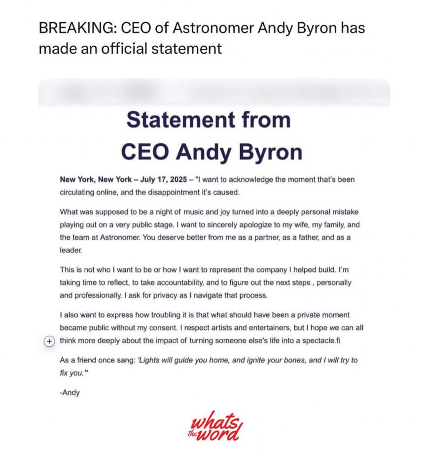 “我要向我的妻子、家人以及Astronomer团队致以最深的歉意。作为伴侣、父亲和领导者,你们值得拥有更好的我。”