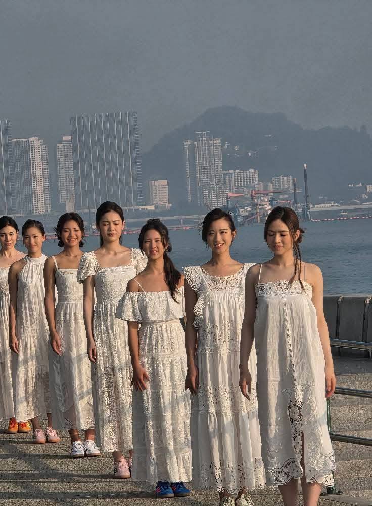 身穿白色长裙的佳丽们,今早现身旧关仔角展开第一天的拍摄工作,吸引不少民众及游客停驻围观。