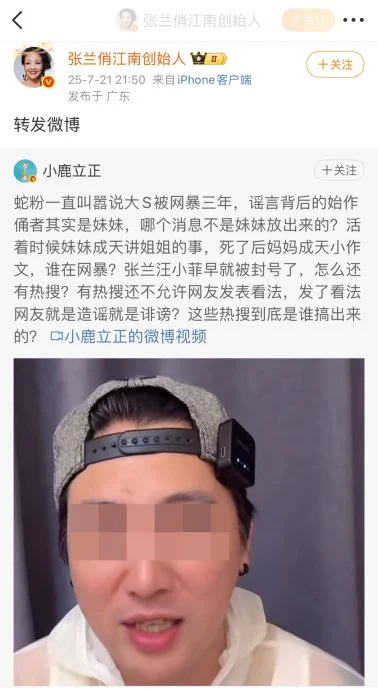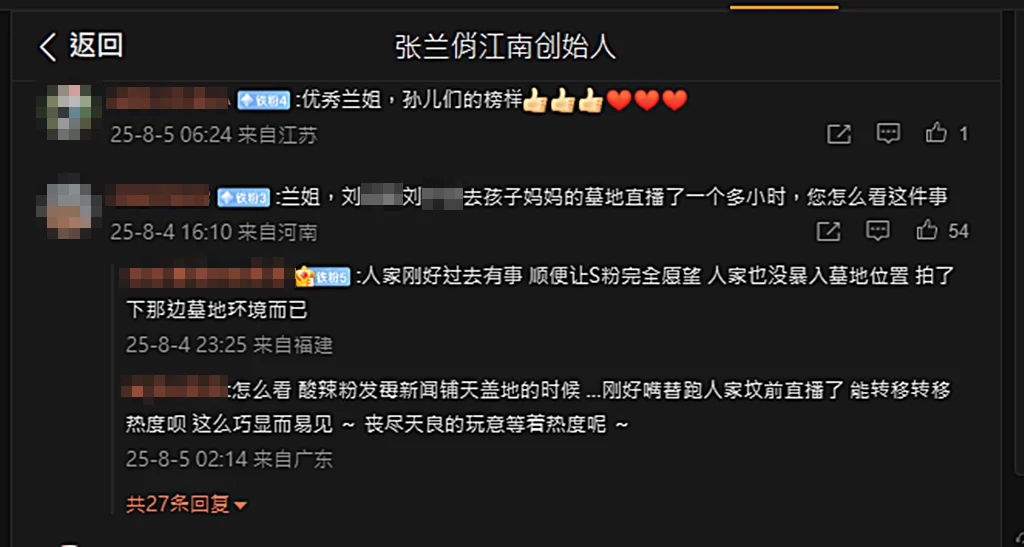 事件延烧至张兰,有网友在她的微博留言,质问她如何看待“与其交好的刘姓网红,竟直播大S墓地超过一小时”。