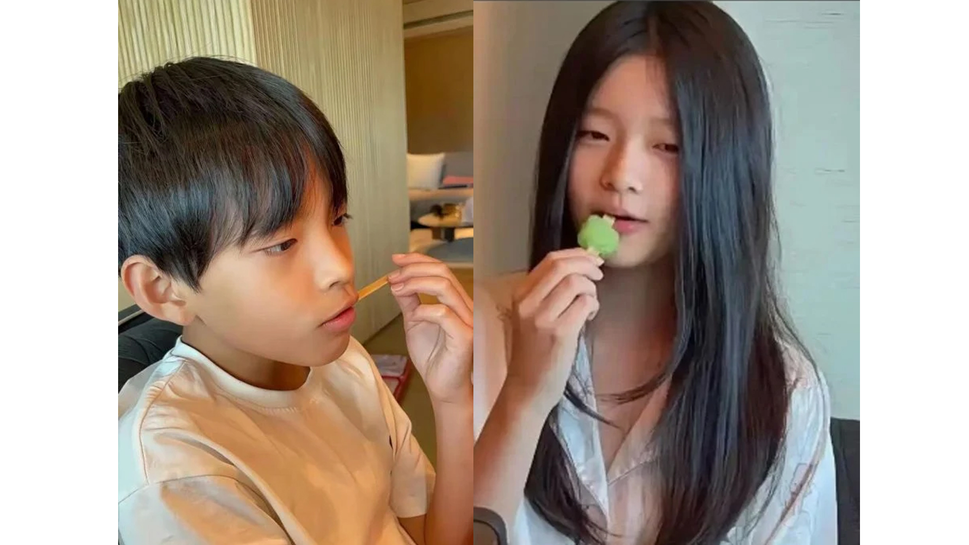 照片中,玥儿和箖箖身穿睡衣,手里拿着冰淇淋,神情自然可爱,但他们的正脸却被完整曝光。网民随即展开热议,不少人感叹11岁的玥儿与大S神似,特别是下半张脸和神态几乎是翻版;而弟弟箖箖则五官酷似汪小菲。