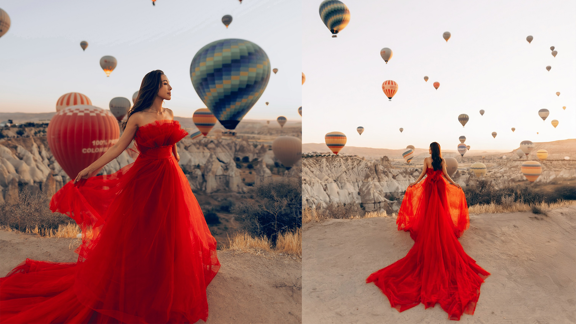 根据《星岛头条》报道,李施嬅在贴文中身穿鲜红露肩长裙,于奇岩景观与热气球点缀的天空下拍摄照片,画面如电影般浪漫。她在文中写道:“好多人都在土耳其拍婚纱照,记录爱的一刻。完全明白,因为真的很美,很梦幻。”