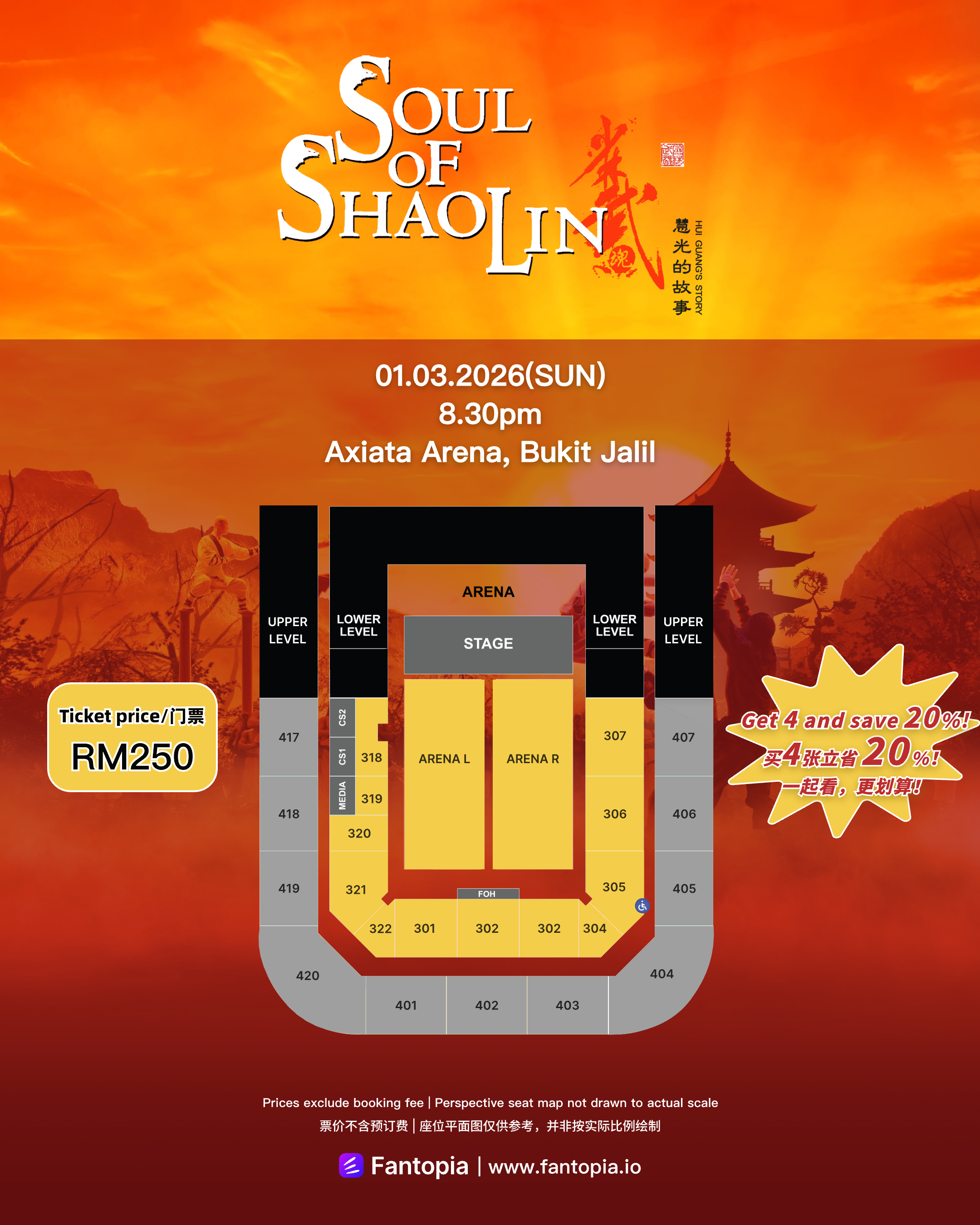 票价统一为RM250,主办单位推出优惠方案,凡购买四张门票即可享有20%折扣。门票将于11月26日(星期三)中午12时公开发售。