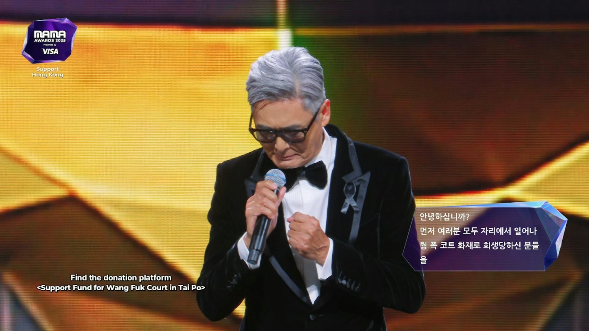 在香港举办的韩国年度音乐盛事《2025 MAMA Award》周六来到尾声,由香港影帝周润发颁发最后大奖,他带领全场嘉宾,悼念香港宏福苑火灾罹难者。