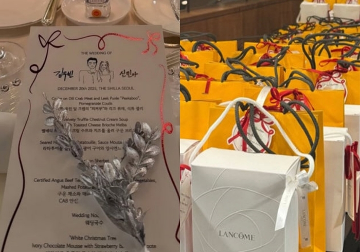 据悉,申敏儿和金宇彬为宾客准备了高价化妆品套装作为回礼品。其中包括申敏儿担任品牌大使的法国美妆品牌兰蔻和奢华香水品牌阿库阿·迪·帕尔玛等。回礼品中还附有“感谢您与我们共度宝贵时光”的留言卡。
