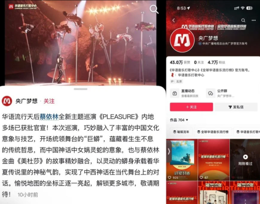 随着央视官方背书,《PLEASURE》演唱会的艺术定位与文化内涵获得高度肯定,也让外界普遍认为,蔡依林中国巡演并无实质阻碍。