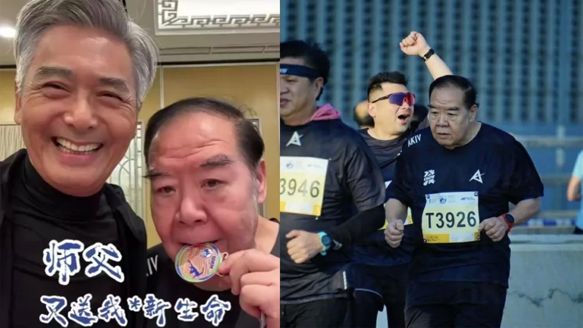 周润发日前带领一众老友,包括79岁的刘江、76岁的鲍起静,以及74岁郑则仕(Kent哥),挑战香港马拉松10公里赛道。平时偏胖的Kent哥,练跑不到一年,加上年过七旬,竟然顺利完成10公里,让发哥忍不住称他为“超班生”,还鼓励网友们别找借口偷懒,要动起来!