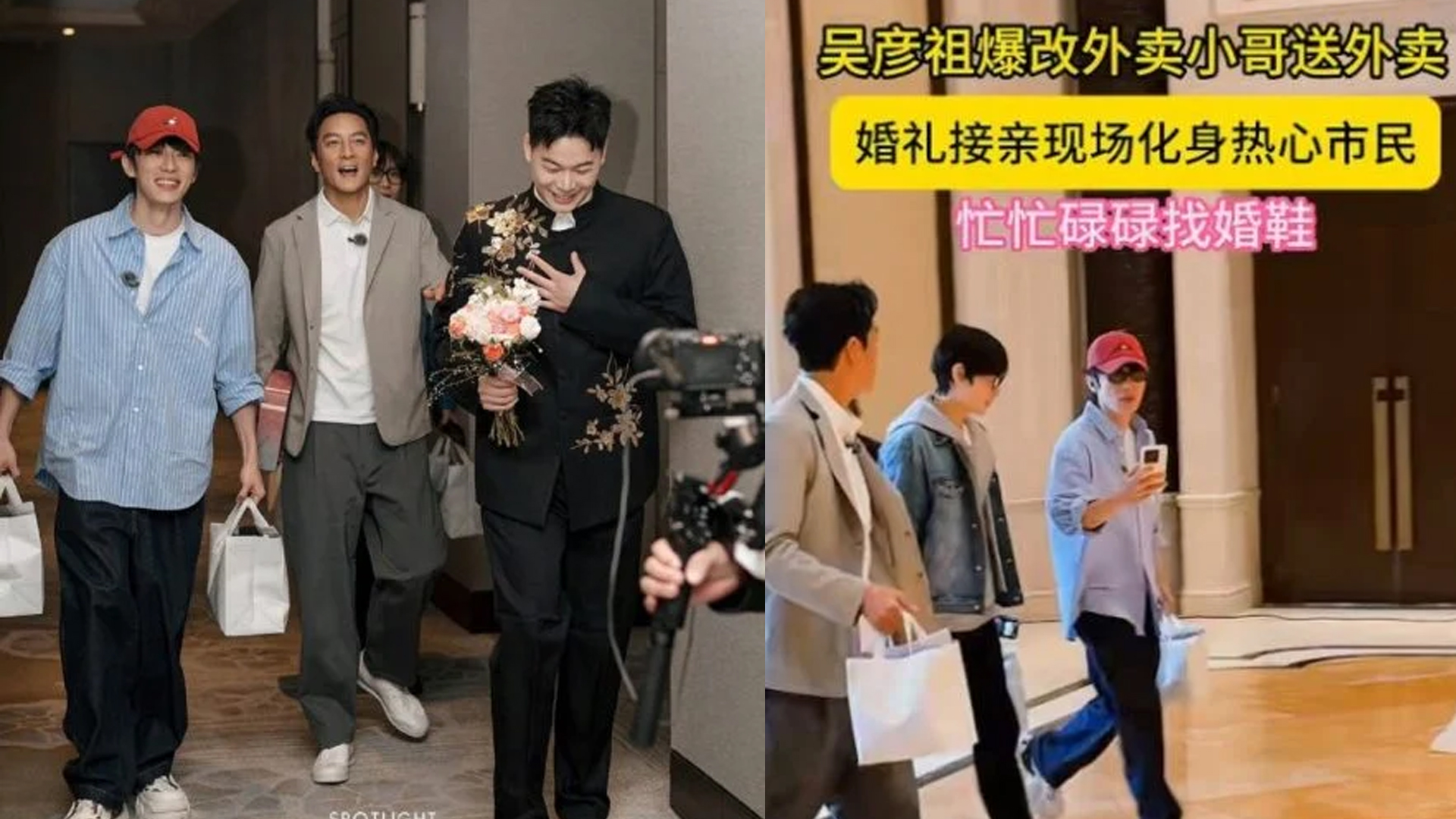据了解,吴彦祖当时正因拍摄综艺节目《风华合伙人》在杭州“上门送外卖”,恰巧赶上婚礼现场,节目组临时邀请他担任伴郎。