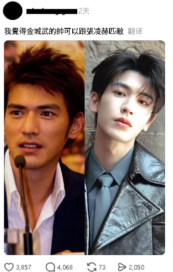 有网友留言指出,“张凌赫确实很帅,但金城武是另一种级别”、“那是没有修图年代的顶级颜值”、“他是神颜级别,不能放在一起比”。