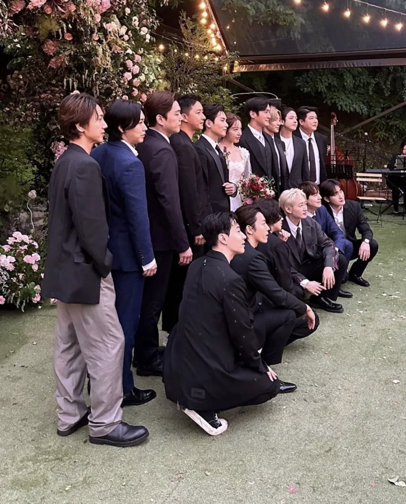 Super Junior成军多年来历经风风雨雨,韩庚、起范、强仁、晟敏已经没在团内活动许久,如今厉旭结婚凑齐了所有人,13人再度同框,就连中国籍的韩庚都特地飞往韩国参加婚礼。