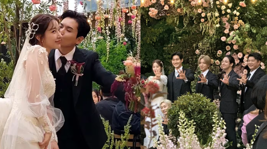 一对新人入场时,镜头拍到宾客位置,Super Junior成员们坐在一起,韩庚、东海、强仁等人都站在海景第一排录影,全场掀起热烈尖叫声。