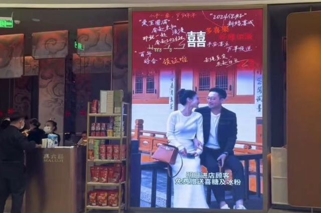 无论如何,汪小菲的餐饮品牌推出为进店顾客送喜糖的活动,店门口还摆放着汪小菲与马筱梅的亲密合影,除了喜糖,汪小菲还为所有进店食客免费送冰粉。