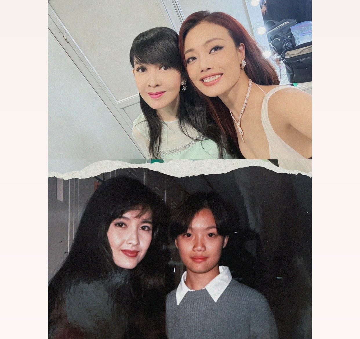 周慧敏晒出一张对比照,上面的照片是近日两人一起出席颁奖礼的合照,虽然周慧敏与容祖儿相差12岁,但周慧敏脸上完全不见岁月的痕迹。
