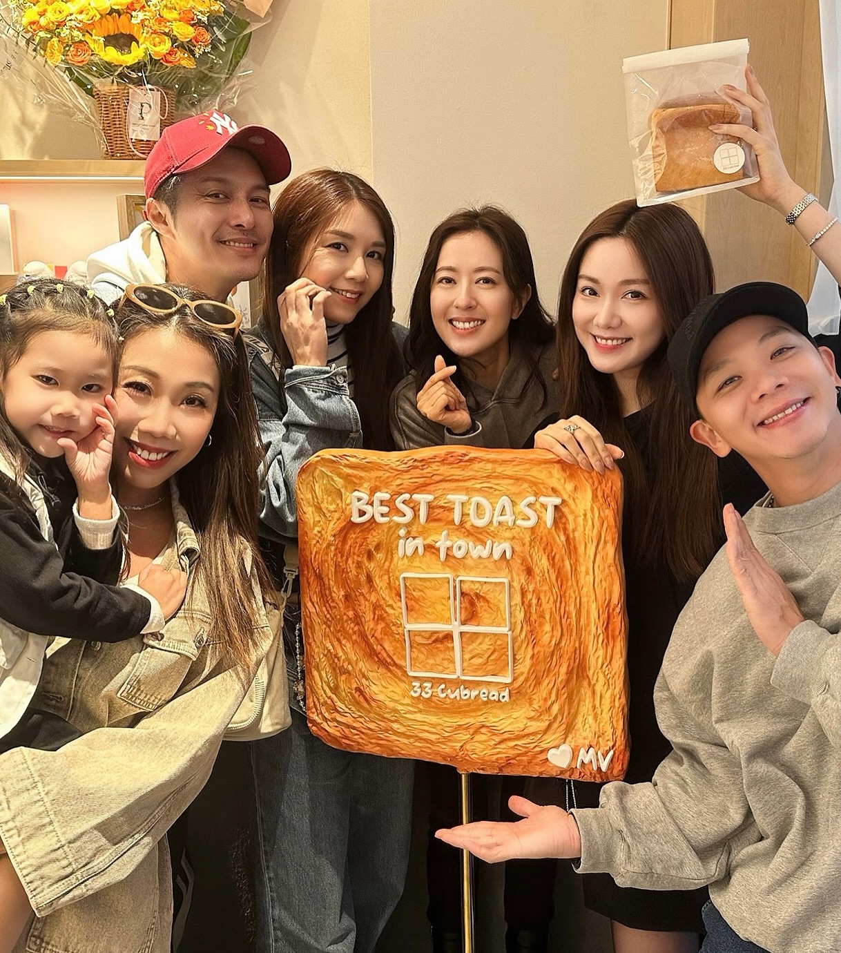 此外,汤洛雯与铁马家族的林子善和黄嘉乐也一起出席面包店开幕式。