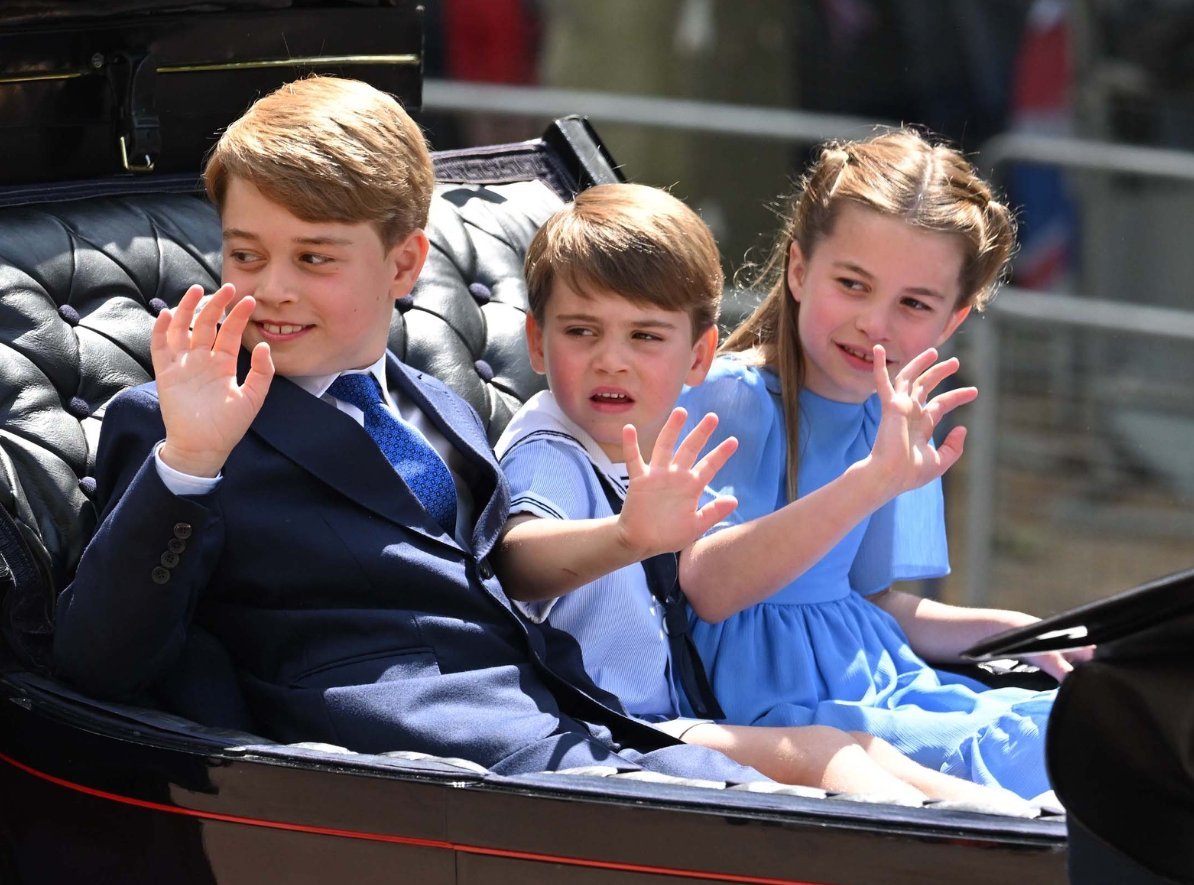 路易也被拍到稍早与母亲凯特和康沃尔公爵夫人,及乔治和夏洛特同坐马车,沿着林荫大道前往骑兵卫队阅兵场时,热情地向旁观群众挥手致意。