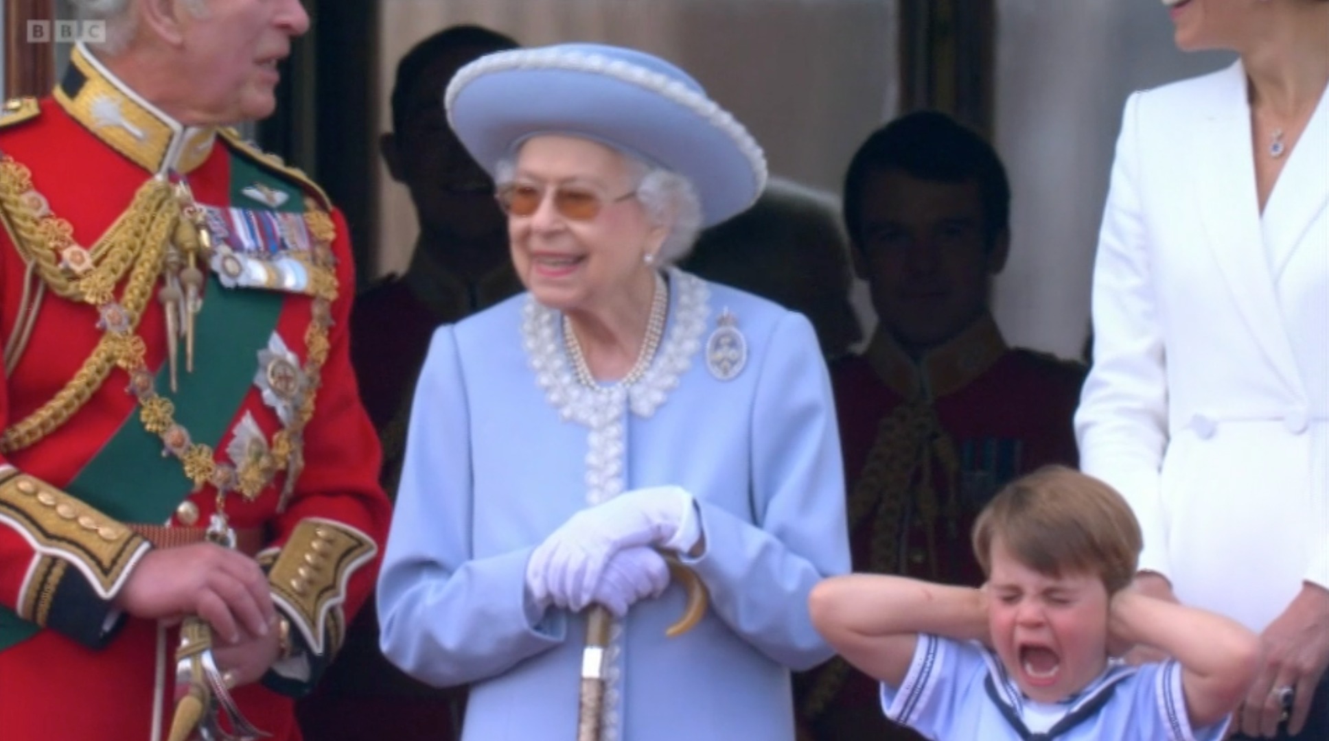 英国伊丽莎白二世女王庆祝登基70周年的白金禧,威廉王子与凯特王妃最小的孩子路易王子在白金汉宫露台观看皇家空军空中分列式时,表情搞怪又可爱,非常抢镜!