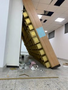 根据台媒拍摄的照片,一整柜的纳骨塔全部倒塌,还有好几排柜子倾斜,多个骨灰坛摔落地上已经破碎,现场都是骨灰及碎玻璃,多个牌位也不敌强震掉落。