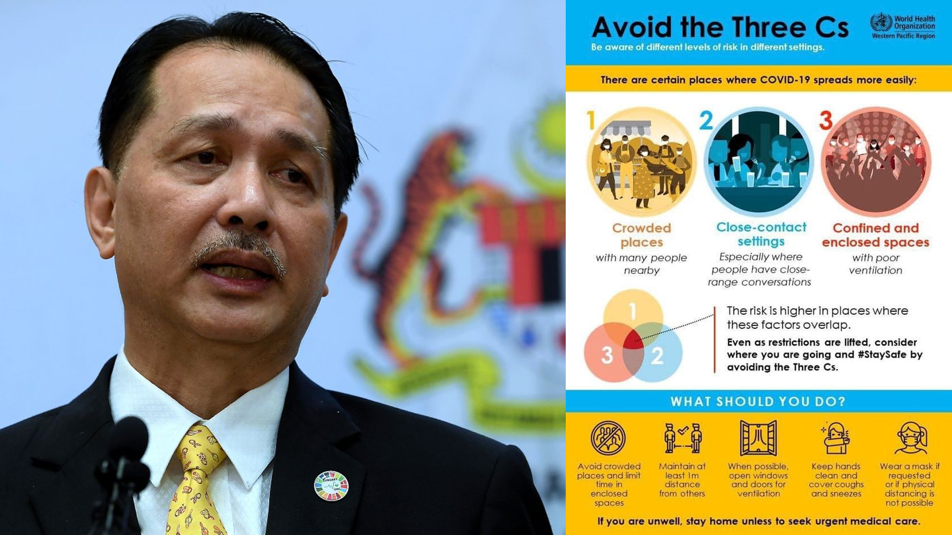 ➡️卫生总监诺希山指出,经济和健康之间难取平衡,一旦选择其一,就要面对牺牲另一方的局面,他再三提醒人民 应该采取3W措施(Wash 勤洗手, Wear 戴口罩, 和Warn 保持警惕)、以及避免3C(Crowded place 拥挤的地方, confined space 密闭的空间,以及要避免close conversation近距离交谈),做好防疫。