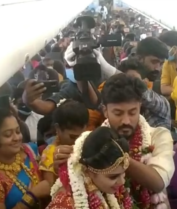 据《每日邮报》消息称,泰米尔纳德邦目前正处于封锁限制之下,规定婚礼人数不能超过50人,而这对夫妇选择在飞机上完成婚礼,广邀160余位亲朋好友参加,机上几乎无人佩戴口罩,场面一片混乱。