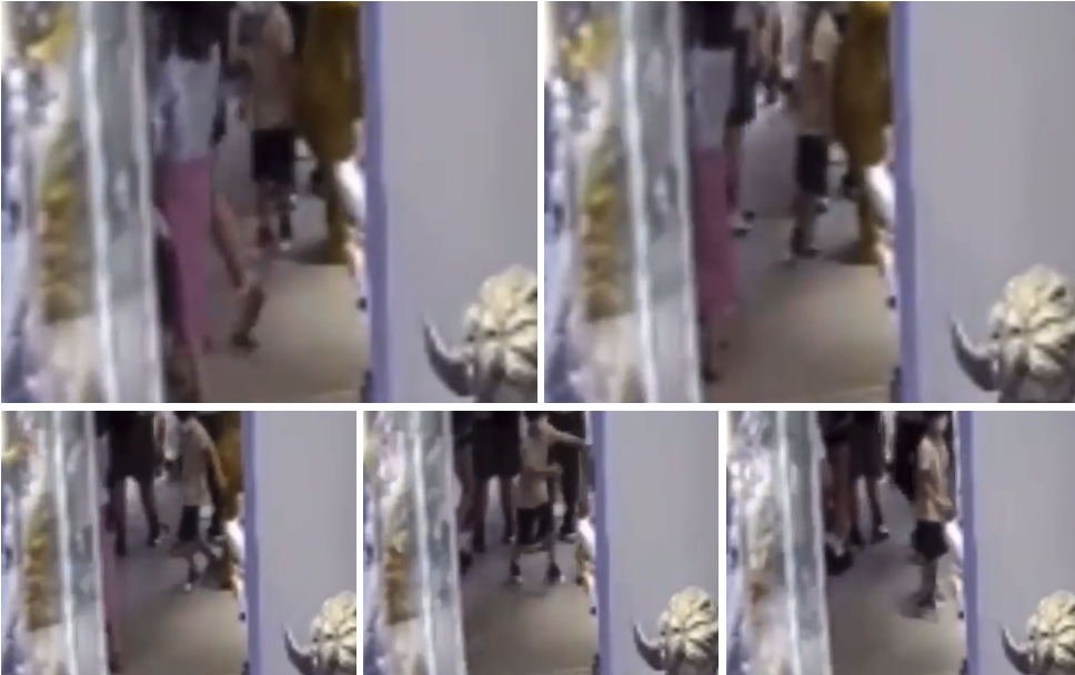 就在热烈讨论之际,拍摄到事发现场的电眼画面让当事人家长有了质疑,因为画面显示小童是挨到了公仔,就瞬间倒塌破碎,而不是店员所指的“曾踢了公仔”。
